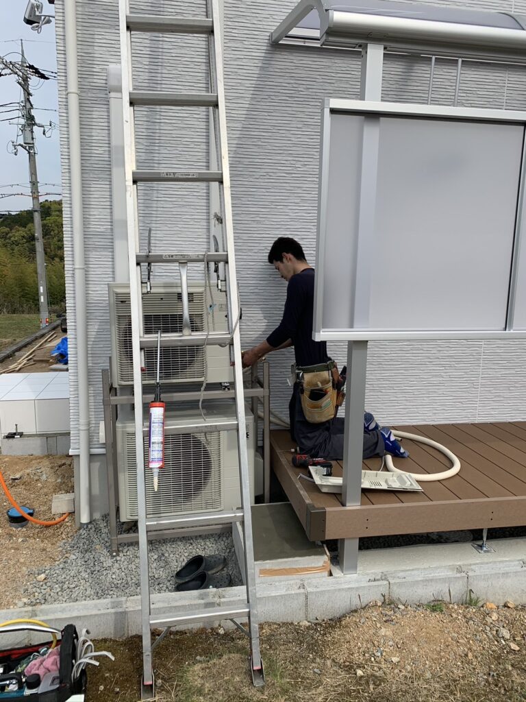 一仕事終えた後のエアコン工事職人の誇り
